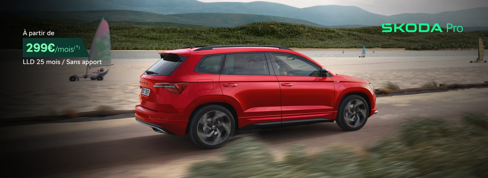 **Modèle présenté : Karoq Sportline 1.5 TSI 150 DSG, avec options, LLD sur 25 mois et 40 000 km, loyer de 340€, sans apport. Valable du 01/03/2026 au 30/04/2026.